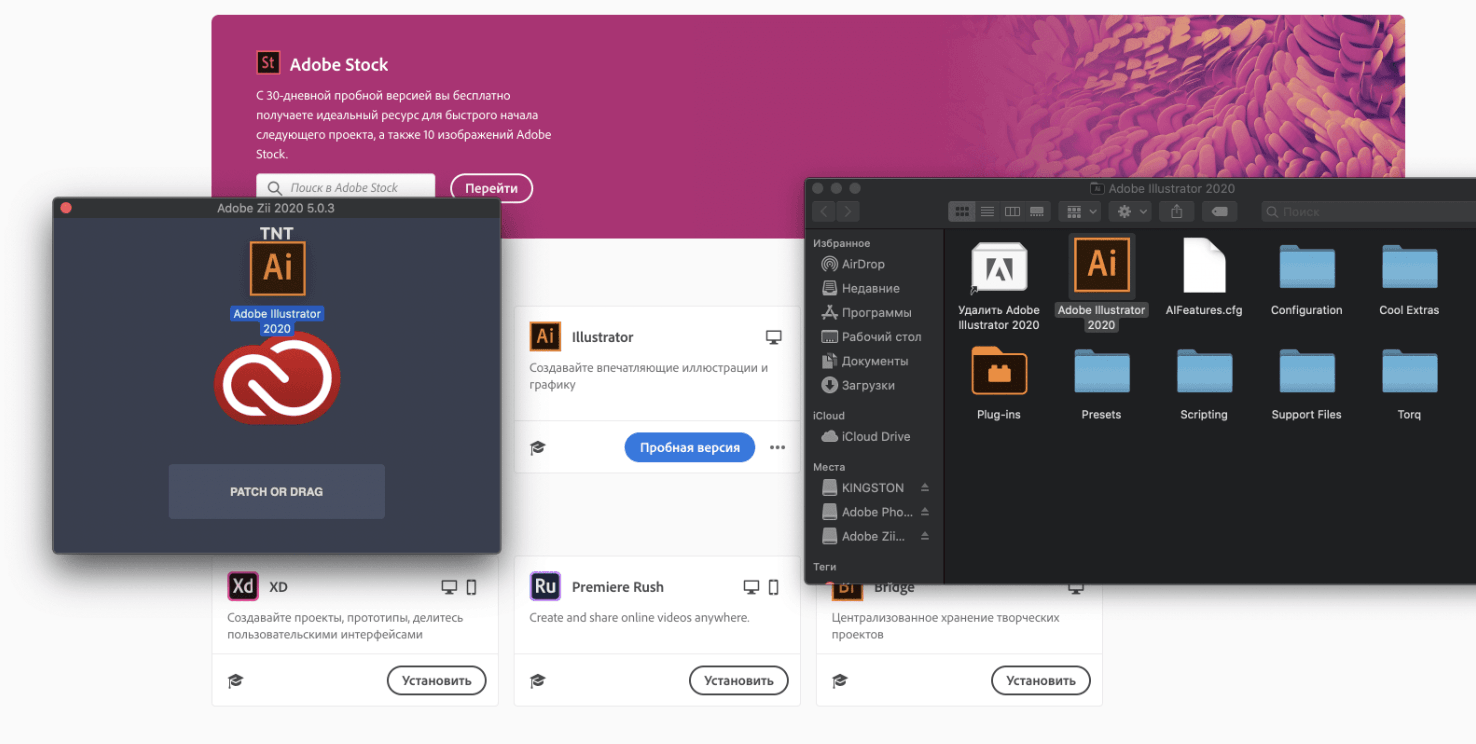 Adobe Photoshop 2020应用程序到 Zii 的PATCH OR DRAG处。